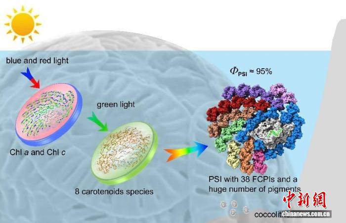 北京中国新闻社,9月12日(记者Sun Zifa)是海洋主要浮游植物之一,石英藻类可以适应各个海水深度的可变光环境。良好的光合作用自养的生长将有助于他们迅速再现。但是,如何获得石英藻类光系统复合物的微观机制和进化机制,以前尚不清楚并吸引了很多关注。根据中国科学院的报道,中国科学家团队最近对光合生物学适应性进化进行了重大发现:首次,Quartz algae的独特方法是通过扩展和优化光线系统的光线系统来适应海洋环境的光环境。准级光系统的超大复合材料的示意图我亮着浅的天线及其能量转化的效率。照片由中国科学院植物学研究所提供。这项研究的重要成功是由中国科学院植物学研究所的研究所研究员Wang Wenda和研究人员Tian Lijin完成的。他们首次从Amili Tetrahydrosa清洗和评估了光系统I-氟氧蛋白叶绿素A/C结合蛋白(PSI-FCPI)的三维结构,首次破解了分子生物适应的分子进化机制。 9月12日上午,北京时间,研究结果的作用以封面的形式在线发表在《国际著名的学术期刊》“科学”中。 Wang Wenda说,对准级光光系统复杂机制的结构分析和研究为理解光合生物的有效能量转换机制提供了一种新的结构模型。在fUTURE,研究团队还希望基于此设计新的Fotosynsys蛋白,并进一步指导人工模拟和高碳生物资源的开发,在合成生物学领域具有巨大潜力和对气候变化的反应。天利金(Tian Lijin)介绍了Quatta的PSI-FCPI SuperComplex是一台大型光合膜蛋白机器,由51个蛋白质和819个色素分子组成,分子量高达1.66兆达,超过了众所周知的众所周知的型毛乳脂性照片。它的右截面是标准轻型植物(PEA)灯系统超复合物的4至5倍。飞秒瞬时吸收的结果表明,石英藻类体积增益的PSI-FCPI转化效率超过95%,这与terrestrial Light System的I超复合的效率相当,表明是石英藻类转移的PSI-FCPI的效率特性。这项研究发现,Quat藻类的光系统I的核心被38个富迦蛋白叶绿素A/C包围,该叶绿素a/c结合了抓紧的天线蛋白,并以模块化的方式与8个径向有组织的轻度捕捉的轻型天线条进行排列。我依靠大量bglossy天线的精确组件的“涡旋”光学系统核心上的巨大捕鼠天线,这些天线极大地扩展了光面积。研究小组还识别出丰富的叶绿素C和岩藻糖素类型的类胡萝卜素,它们在新发现的捕光天线中非常高,使它们可以有效地吸收蓝色和绿光,并在深水中有460-540纳米之间的波浪。此外,大量叶绿素C产生与叶绿素a的密切耦合并去除能量陷阱,形成纯平且平稳的能量递送,这可能是维持超高体积转换效率的关键。据了解,细胞壁OF Quatta是由碳酸钙晶体组成的石片。在白垩纪时期,它达到了高潮。这不仅是主要促进主要生产力鼻孔的主要作用,而且还依靠碳酸钙壳留下重要的“粉笔”形成痕迹,因此它在去除碳和全球碳周期中起着重要作用。 (超过)